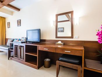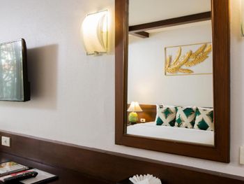 Понравился завтрак - шведский стол и само положение отеля. Есть балкон, бассейн с лежаками и столиками вокруг, за которыми можно посидеть вечером. Также есть романтическая беседка со столиком и абажуром над столом. Кондиционер работает нормально, если поставить на 25. Рядом 7-Elewen и рынок, где можно купить фрукты и недорого поесть разнообразной тайской кухни, заказать пожарить различную рыбу. Есть халаты, которыми мы не пользовались.