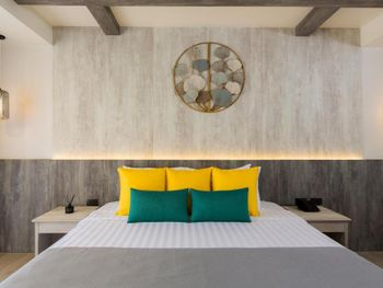 Расположение: удалённо от шума и достаточно близко к морю. Беспроблемный заезд ночью. Хорошие, недорогие завтраки, уютные номера с большим балконом. Наш номер выходил на сторону бассейна, перед балконом росло дерево и можно было спокойно сидеть на балконе, при этом скрытым от глаз. Удобная кровать