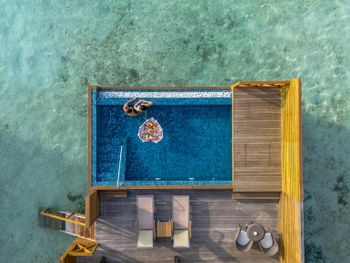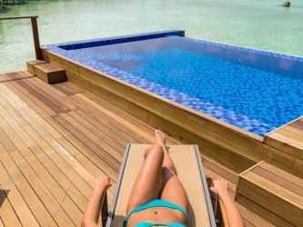 Вилла на воде шикарная! В рамках своего острова видели разных рыб, акулят, ската, черепаху, осьминога.