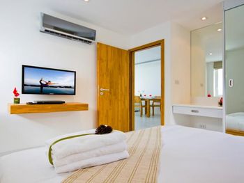 Не понравилась подставка для телевизора в каждом номере стоит так что люди ломают пальцы ,так же плохое расположение очень далеко от пляжа час пешком ,а так же грязный старый бассейн