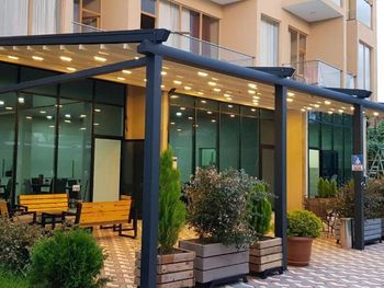 По уровню сервиса отель точно лучший в Кобулети! Отличный номер с удобной кроватью, белоснежным бельем, панорамными окнами и большим балконом, на котором удобные стулья со столиком, сушилка для белья. Бассейн с идеально чистой водой, есть детская площадка с мини-городком и батутом, ухоженная территория, хорошие завтраки до 12.00 (для тех, кто любит поспать). Замечательные хозяева и персонал! Всегда подскажут, покажут и помогут. ОТДЕЛЬНО ОГРОМНОЕ СПАСИБО хозяину отеля! если бы он не предложил бесплатно нас отвезти на автовокзал, то точно опоздали бы на автобус до Тбилиси. Только благодаря ему догнали автобус, который проехал мимо автостанции. Не часто встретишь такое душевное отношение! Дай Бог счастья ему и его семье! :-) Обязательно вернемся еще!