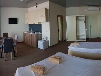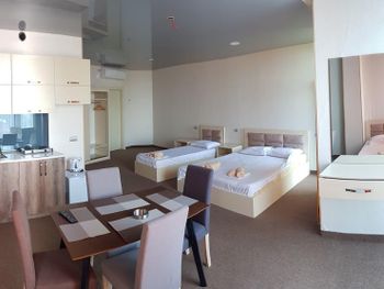 Отель рекомендую!!! Отель за которым следят и поддерживают максимальный комфорт постояльцев. Виды с номера на море. Есть лифт и большой холл со стильными диванчиками. Чистейший бассейн. Вкусные завтраки (кто бы что не писал, но позавтракать взрослому человеку есть чем и главное, где присесть, для детей каши с молоком и тд, фрукты). Десткий городок просто спасение для родителей у бассейна или вечером с вином на диванчике. Безопасность рядом с отелем. Парковка для авто рядом с отелем под видео наблюдением. Возможность за 5 лари отдать вещи постирать и Вам их вернут сухими прямо в номер. Номер с видом на море очень просторный, удобные кровати, подушки и чистое белье. Ванная комната с хорошей сантехникой. Есть кухня и все необходимое для приготовления пищи. 20 метров от отеля очень хороший оптовый магазин с хорошими ценами и бабушка которая делают вкуснейший грузинский хлеб. Если вы на машине то на городской пляж вы не пойдёте, а поедете на магнитные пески в Уреки или Шекветили (рекомендую-этот лучший песчаный пляж в Грузии)