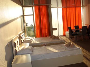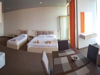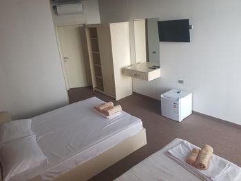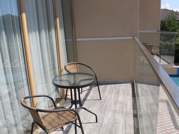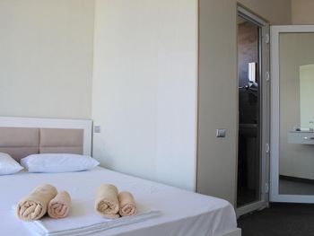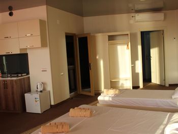 Хорошая гостиница. Новая. Номер просторный. Хозяин старался решить все, что было нужно. С окна видно море. Есть бассейн, но мы не успели в нем покупаться. До моря довольно близко идти.