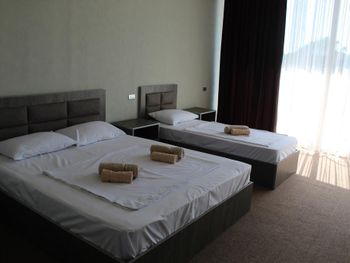 Отличный отель для семейного отдыха. Своя территория с бассейном(в том числе с отделением для малышей ), батуты, качели делают комфортным отдых даже при плохой погоде. Очень приветливый и заботливый персонал. Замечательная кухня в отеле особенно удобна для семей с детьми. Вам приготовят как грузинские блюда, так и привычные лично нам порешки-котлетки-отбивные и суп-салат. По средней цене очень удобно получить все в отеле, заранее заказав. В 5 минутах ходьбы два магазина со всем необходимым. В семейных номерах есть кухня и холодильник. Мы были компанией из 4 семей и было очень здорово, что можно отпустить детей на территории отеля и хотя бы 2-3 часа пообщаться взрослыми - это незаменимый бенефит этого отеля! Для семейно-дружеской поездки идеальный отель за адекватные деньги!