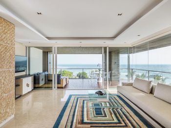 Нет собственного пляжа. Есть правда лестница к океану. Но это общественный пляж. Который не чиститься. И иногда там скапливается мусор от океана.