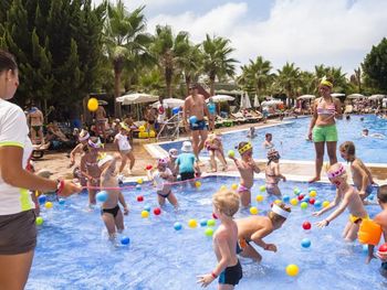 Кто первый раз собирается в этот отель, будьте готовы, это семейный отель.Много детей разного возраста и "взрослое" поколение.Персонал супер, отличные девочки аниматоры. Отель огромный и красивый. Море в двух шагах.