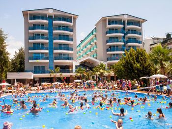 Отель очень старый и какой-то неопрятный, как будто у него нет хозяина, в коридорах все обшарпаное, лифт маленький и ждать его минут по 10 можно, мы только раз дождались, остальное время пешком на 3 этаж. Он очень маленький, на бассейне и пляже с 7 утра уже нет свободных лежаков, сам бассейн маленький для такого количества отдыхающих. Замена пляжных полотенец - 1 доллар, для детей нет никаких игр и развлечений в детском клубе - или рисуйте, или сами себя как-то занимайте. Сладости и выпечка, как для Турции вообще ни о чем, мы ели только фрукты. Номера тоже очень маленькие, крошечные, почти во всех номерах окна смотрят в соседние здания. Еще поразило отсутствие дезинфекторов и залапаные стаканы, иногда с помадой. Отель может лет 20 назад и был 5*, но сейчас это слабенькая бюджетная четвёрка, а то и трояка.