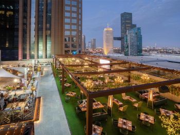 Отель Conrad Dubai предлагает выбор стильных и инновационных ресторанов и развлекательных заведений: ресторан Anása предлагает настоящую греческую кухню на свежем воздухе; бар Kimpo, вдохновленный корейскими заведениями, сочетает в себе атмосферу Бруклина и Сеула; и элегантный лаундж Isla в лобби, где в течение дня подают свежую выпечку и полезные салаты.