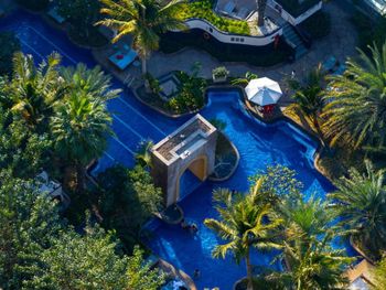 Красивый бассейн с прохладной водой, именно то, что нужно в такую жару, много зелени и красивых лампочек , приятно было в нём плавать.