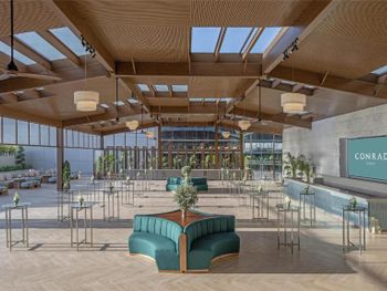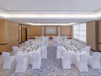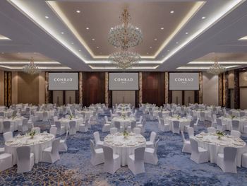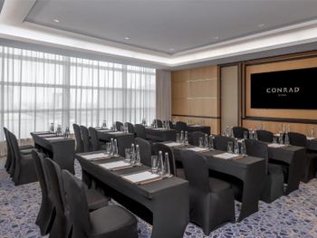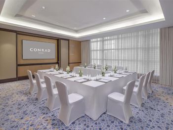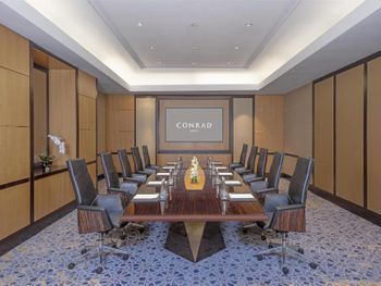 Отель Conrad Dubai предлагает одно из крупнейших помещений для встреч и мероприятий в городе площадью более 4400 кв. м, включая 2 больших бальных зала, 3 зала заседаний, бизнес-центр и 11 конференц-залов. В отеле есть единственный бальный зал с естественным освещением и лифт, предназначенным для перевозки автомобилей внутри помещения, что идеально подходит для презентаций автомобилей и эксклюзивных свадеб.