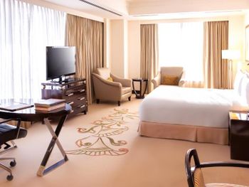 Немного неопрятные номера для люксового отеля. Несколько обшарпана мебель (но вообще некритично), а также – БЕЗУМНО ГРЯЗНЫЕ ОКНА. Возможно, этим страдают все отели в деловом районе.
