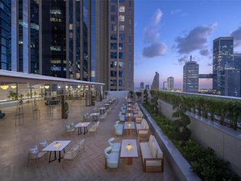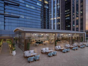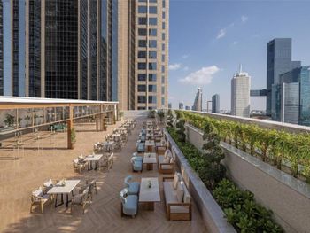 Отель также может похвастаться эксклюзивным городским оазисом с бассейном площадью 5500 кв. м на 7 этаже. На фоне тропических пальм и пышных лужаек расположена живописная терраса с двумя бассейнами, скрытыми дорожками и частными беседками. Это место подарит настоящий отдых от городской суеты. Фитнес-центр и спа-центр отеля, ориентированные на хорошее самочувствие гостей, также предназначены для того, чтобы поднять отдых и омоложение на новый роскошный уровень. Фитнес-центр предлагает современное оборудование Technogym, а также открытый павильон для йоги. Гости могут в полной мере гаммой ощущений в отмеченном наградами спа-салоне Conrad с термальным лаунджем, сауной и аутентичным хаммамом.