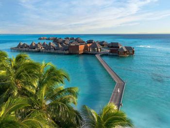 Set on 2 separate islands connected by a bridge, the luxurious Conrad Maldives Rangali Island offers spacious private villas. It boasts the all-glass underwater Ithaa Restaurant and 2 award-winning spas.