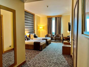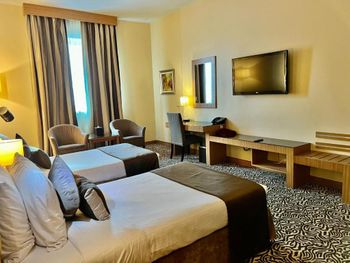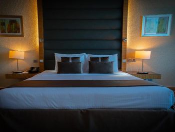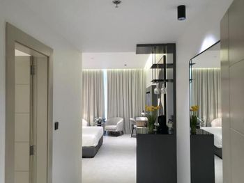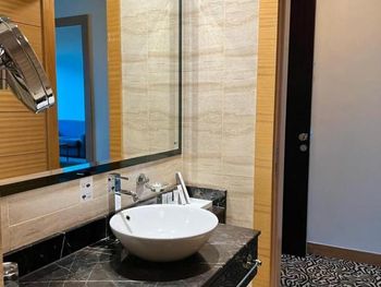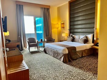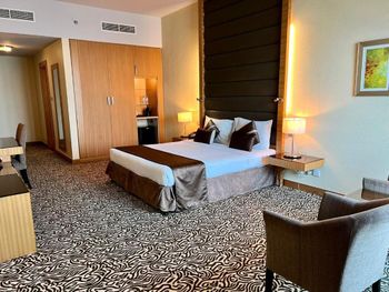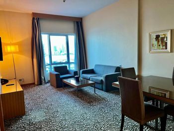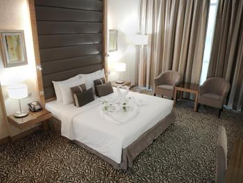 The hotel features 255 spacious rooms and suites, including Superior, Premium, and Executive categories. Many rooms offer private balconies with stunning lagoon or city views. Each room is equipped with a flat-screen satellite TV, electric kettle, work desk, and a modern private bathroom with complimentary amenities. Suites include a separate living and dining area, and select suites offer a private spa bath for an extra touch of comfort.