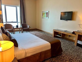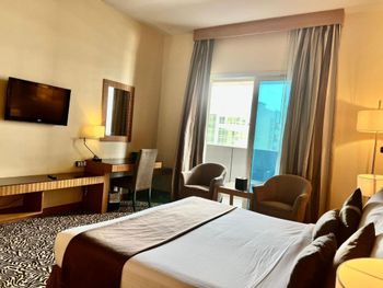 Локация не удачная на самом деле. И вообще, ошибка размещаться в Шарджа, тем более за такие деньги. Пляж в 3 км общественный и дорогой, хотя нет удобств. Такси не чистые, картой платежа нет, торговые центры очень слабые. На остановках кондеры не работают и пекло уличное превращается в печку в будках остановки. Одним словом, отстой полнейший. Лучше через 2 км размещаться на окраине Дубая. Номер в отеле староват, телевизор не работал, слив канализационный забит. Вида с окна совсем нет. Бассейн маленький.