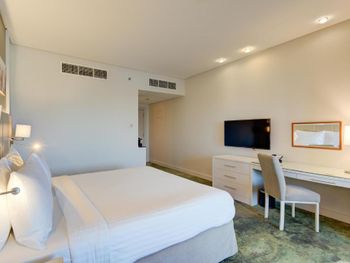 Отель очень понравился. Он отреставрирован. Все чистенько, очень симпатично. Персонал очень доброжелательный. В номере было чисто. Кровать очень удобная. Есть чайник, холодильник, чай, кофе, водичка. Завтрак: выбор был не очень большой, но все было вкусно. Голодными не останетесь) Для детей были каша, панкейки или вафли, омлет, фруктов немного. Отель в одном здании с торговым центром. Он небольшой, но все же есть. Рядом еще был супермаркет, но он закрылся. Немного не хватает его там. Еще рядом есть Макдональдс. Так же у озера есть ряд кафешек. Мы были в одной, там всегда много посетителей, очень вкусная еда, кальян, футбол, все дела) относительно не дорого. Рекомендую зайти отдохнуть и покушать. В целом по расположению отель далековато от центра. До метро минут 20 идти. Детям сложновато будет столько идти. Лучше тогда брать такси. На море есть шаттл. В целом отель понравился.