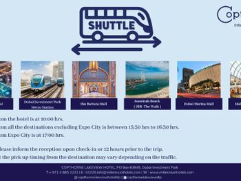 Отель Copthorne Lakeview Dubai, Green Community работает по системе «все включено». Гостям предлагается размещение в номерах с видом на живописное озеро. На территории есть зона для бассейна, где также находится отдельный детский бассейн и терраса для отдыха. Рядом с отелем находится торговый комплекс с большим продовольственным магазином Choithrams, маникюрным салоном, парикмахерской, детской игровой площадкой и несколькими ресторанами. В местах общего пользования предоставляется бесплатный Wi-Fi. Расстояние до торгового центра Ibn Battuta составляет всего 6 км.