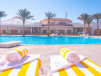 Были мы с 10.11.22 по 11.11.21.цена была 102$ за двоих все включено.удивил номер беспорядком и грязью.полотенец не было.обратились в ресепшен.сказали через 15 мин.принесут.ждали 1.5ч.принесли тряпье(остатки от полотенец).в плоть глазок на двери был разбит и его заткнули скрученной бумагой.после пошли ознакамливаться с территорией.она заброшенная.пляж так же обтянут лентой,чтоб не проходили туда.есть маленький кусочек рядом с пантоном.лежаки старые-старые и грязные.постояли 10мин.и ушли в город отдыхать от отеля).вернулись поздно.сразу спать.утром пошли на завтрак.еду нельзя ругать.но эту столовке надо закрывать. Люди же едут отдыхать.копят деньги и тут такое.ладно мы были одни сутки. P.S. На этом Египет не перестал удивлять.это был аэропорт.4 ч вход в аэропорт.еще 2.5ч регистрация и таможеный досмотр.