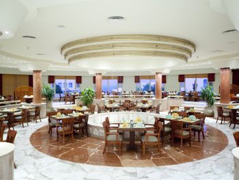 В отеле ежедневно сервируют большой завтрак «шведский стол». В 3 ресторанах готовят блюда международной и средиземноморской кухни. В 3 барах курортного отеля на протяжении всего дня предлагают напитки и закуски.