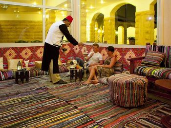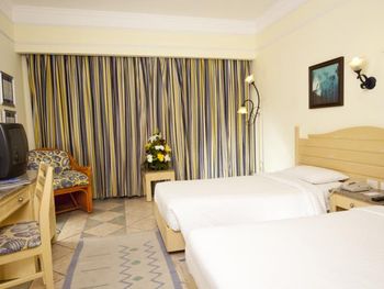 Завтрак - часть блюд сомнительной свежести, немытые чашки, сок с привкусом хлорки. В номере запах канализации, грязный пол, грязная вода из крана (иногда рыжая, иногда серая), душ не съемный. Шампунь, гель для душа и мыло клали в течении нескольких дней только после того, как попросишь на ресепшен. Постоянный контроль охраной любого шага, вход в отель через магнитную рамку. Отсутствие магазинов в округе, только так называемый "рынок" с исключительно туристическим набором товаров. Невозможность выйти за территорию отеля прогуляться пешком, так как идти абсолютно некуда, и у охраны самого отеля, охраны соседних отелей и полицейских кардонов это вызывает сильное недоумение и подозрение. Breakfast - a number of items not absolutely fresh, dirty cups. A smell in the room, dirty floor, dirty tap water. Security control on the entry in the hotel, constant control of security on the territory. No possibility to go for a walk outside of the hotel, as there are nowhere to go and it causes the inquitude of numerous securities as from the hotel itself as from other hotels and police check points on the roads.