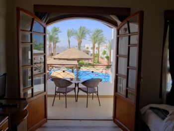 Отсутствие народа, завтрак, вид с балкона, бассейн