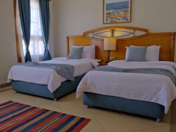 Останавливались на 4 ночи. Очень бюджетный отель для очень неприхотливых туристов. Сам отель уставший от времени, мебель деревянная хорошего качества, по первому времени был видимо хороший отель. Персонал доброжелательный, негатива не было. Заселение было достаточно быстрым, приехали в отель в 4 утра (предыдущие сутки пришлось оплатить, чтобы не ждать 14.00 когда проходит заселение). Из аэропорта был бесплатный трансфер от Booking.com. Водитель встретил и довез очень хорошо. Номер 131 на втором этаже достаточно большой с балконом, выходил на бассейн, где не было музыки. В номере был маленький холодильник, шампунь, гель для душа и мыло в индивидуальных упаковках. Есть второй бассейн, там проводится анимация до 22.00. Брали завтрак и ужин. Все очень скромно, однообразно и невкусно, для желающих похудеть «добро пожаловать». Отель возит на 3 пляжа: Риф бич и Фанара бич– платные пляжи, в отеле стоит 1 доллар (на самом пляже для остальных вход 3 доллара). Риф бич – трансфер или 1.4 км пешком от отеля. Пляж с понтоном хорошо оборудован: лежаки, зонтики, душ, туалет, ресторан. При сильном ветре может быть большая волна, есть коралловый риф. Фанара бич - трансфер или 2.2 км пешком от отеля. Вход с берега (нужны тапочки). Есть лежаки, зонтики. Отсутствуют душ, туалет, ресторан. Нет ветра и очень красивый коралловый риф. Хала Бич – бесплатный пляж от отеля, находится в районе старого города, есть трансфер (пешком не ходили), дно песчаное. Отель расположен в 700 метрах от торговой улицы IL Mercato, где находятся все офисы мобильных операторов и приблизительно в 1км от магазина фиксированных цен Mango market.