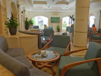Отвратительное питание. Нет шведского стола вообще.Официанты приносят за столики на тарелочке немного разной травы ,как козе,капусточки листик,сухой рис без подливы или сухая засохшая жареная картошка 4-5шт. Биточки куриные,толщиной как салфетки,размером с пальчик 2 шт. Выбора нет вообще. Напитки :чай,кофе,вода преподносится в маленьких стаканчиках и немного больше половины наполненных.На завтрак выпечки нет никакой. Мед разлитый на блюдце. Ни ложкой взять,ни вилкой. Не языком же вылизывать. Оценка по питанию ниже 2. На территории два бассейна. Номера чистые,хоть и старая мебель.Бар на бассейне не работает,только на ресепшине. Вода платная. Людей почти нет.Тишина.