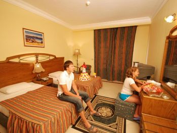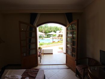 Номера грязные, постельное белье серое с катышками, в номере комары, они залетают через огромную щель из дверей для выхода на улицу, двери старые и рассохшиеся, щели со всех сторон размером в 1-2 пальца. Номер был рядом с бассейном и баром, до 23-30 орала музыка, хотя никого из посетителей там не было. Еда очень скудное меню, выбирать почти не из чего, детям есть практически нечего. Воды в номере нет, надо покупать самим. Сейф с жутким кодовым замком. Очень слабое освещение в номере.