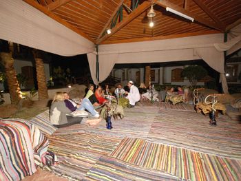 . В отеле нет резервного освещения на случай ЧП. И персонал похоже не готов к действиям при стихийных бедствиях. Сидеть в абсолютной темноте в комнате, когда за окном бушует шторм, о стекла стучит град, а с потолка льёт вода и ты не знаешь когда это закончится, а связи с ресепшен нет (телефон в номере не работал) страшновато. Хорошо, что у меня были с собой свечи и спички. Полы в коридорах были залиты водой от ливня, ресепшен тоже был затоплен. При этом отель аесь был в темноте за исключением зоны ресторана и ресепшен, где зажгли свечи. Никто из администрации не прошёл по номерам вечером-ночью ни во время ни после урагана, не проверил как самочувствие людей после стихии, как состояние номеров. Уборщики вначале пытались выгнать воду из помещения ресепшен, расставляли ведра под струи с потолка, но вскоре бросили это занятие и оставили все как есть до утра. Вычерпывать воду, отжимать тряпки - этому они, по всей видимости не обучены. На следующий день последствия потопа почти устранили. Но у нас в номере вода капала с потолка ещё 3 дня после стихии, спать было крайне неспокойно от стука капель и от того, что сыро и холодно: кондиционер на обогрев не работает, а обогревателей и отопления нет. Впрочем такая же картина была судя по всему в большинстве отелей Хадабы, на которую обрушился шторм с градом.