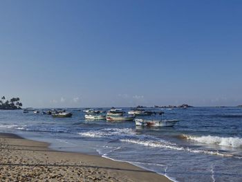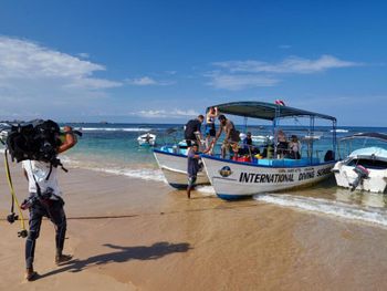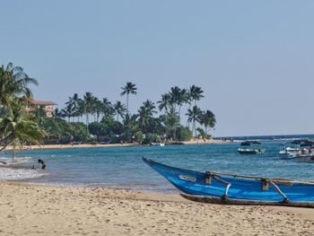 Почему так подробно? Потому, что 14 дней вы не сможете выйти из отеля НИКУДА. Кроме пляжа. Собственно, пляж тоже сыграл свою роль при выборе отеля. В Хиккадуве на Корал Сандз Бич вода всегда была чистая и прозрачная, отливы незначительные, можно сноркелить; видели и полутораметрового тунца, и коралловую акулу, и мурену. Пляж во избежание контактов с местным населением отгородили; сидят полицейские в форме. А вот пресловутые лодки для морских прогулок (они катают только ланкийцев, которые садятся в лодки за пределами огороженной территории нашего отеля) не удосужились убрать из района нашего пляжа. Отсюда: и запах солярки, и опасное сближение с купающимися. Очень напрягало!