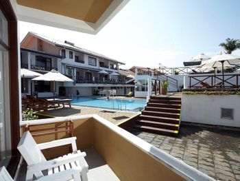 Небольшой отель, два бассейна, охрана, очень приятный персонал, свой генератор, хороший wifi, уборка номера каждый день. Брали только завтраки, нам нравились.
