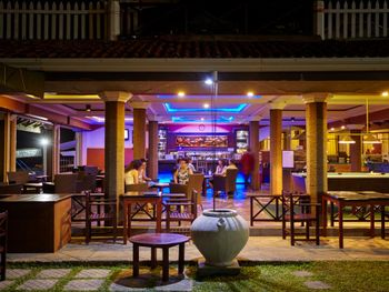 Бар – дорогой (пиво, кола, содовая в 2-2,5 раза дороже, чем в магазинах)! Музыки в ресторане никакой, ни живой, ни в записи. Как в санатории для неизлечимо больных!