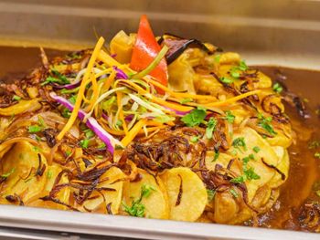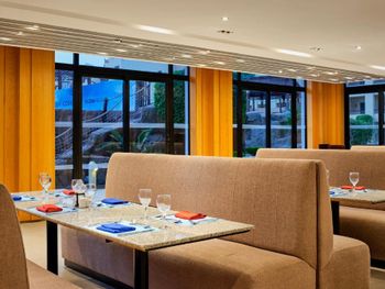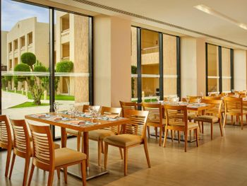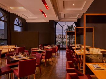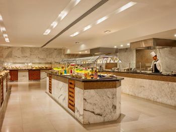 По утрам подают завтрак «шведский стол» или халяльный завтрак. Ресторан специализируется на блюдах интернациональной кухни.