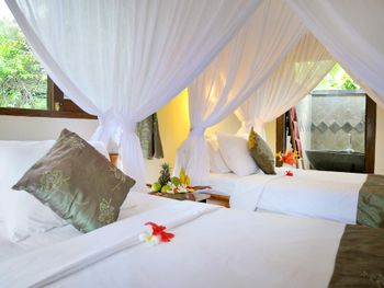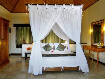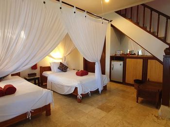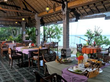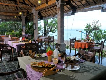 Номера большие, просторные, особенно ванная и душ. Чистота на троечку с плюсом, у нас например даже простынь кровати была испачкана чем-то. Меня, если честно, вопросы чистоты не сильно задевают, но для прекрасного пола это как красная тряпка для быка). Завтраки средние на любителя, но это, как я понял, почти везде на Бали, не считая именитых отелей и резортов. Тут что-то вроде шведского стола, но однообразно и выбор не богат. Готовят не плохо, но дороговато по стоимости, в окрестностях можно найти лучше кафе и варунги с более демократичными ценами. Собственно, кафе отеля это единственное место в Амеде среди нами посещенных, где были таксы и сборы плюсом к цене, в других заведениях это уже включено в цену. Отель расположен прям на берегу, это очень удобно. Однако, напротив отеля как такового рифа нет, нужно пройти чуть влево или чуть вправо на пляже, но это не критично. Лежаков при отеле на пляже тоже нет, есть в правой части пляжа платные. Персонал приветливый, услужливый. В целом в этом районе Бали дешево - цены в кафе / варунгах, магазинах, фруктовых лавках. В том же самом Нуса Дуа все втридорого, поэтому не скупитесь покупать здесь фрукты, араку, сувениры и тд