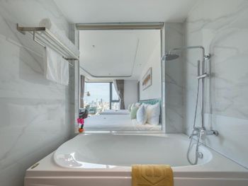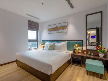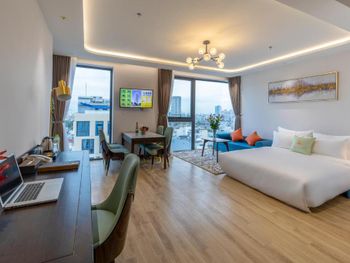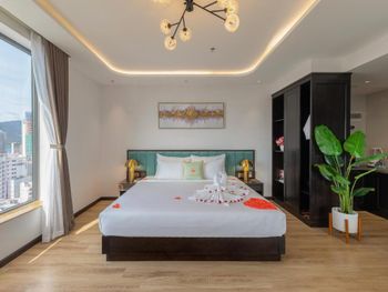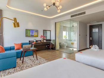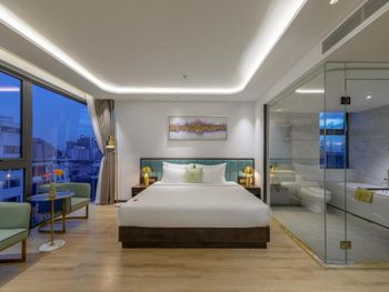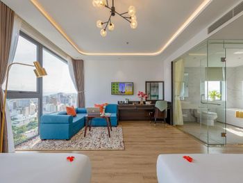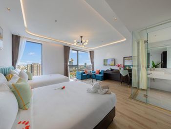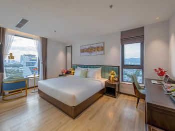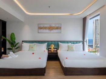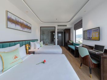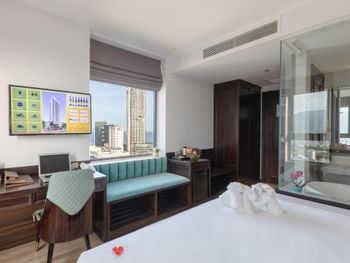 Близкое расположение к морю, но при этом на тихой улице. В номере все есть, ванные принадлежности, фен, холодильник, тв., нет балкона, классный Басик на 22м этаже, нормальный завтрак, для Вьетнама - очень даже хорошо