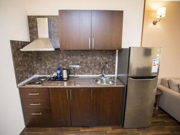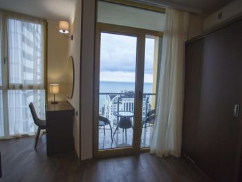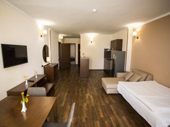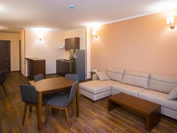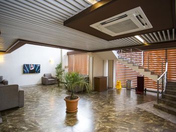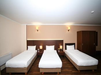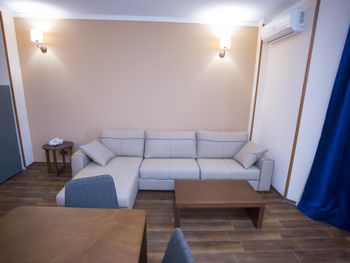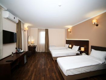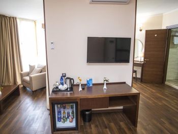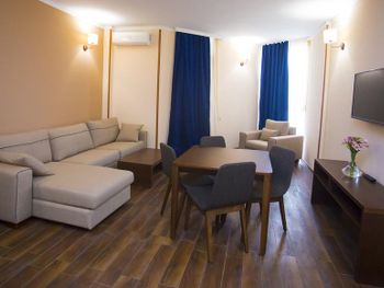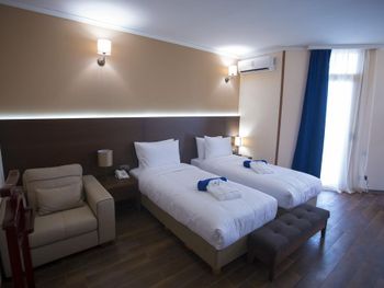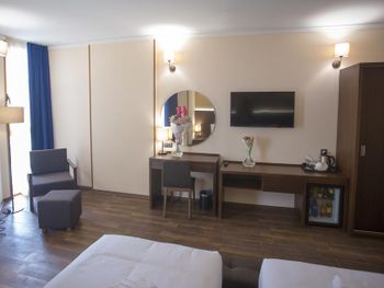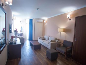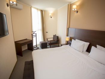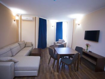 * Немного огорчил вид из окна, точнее с балкона. Раньше, справа, перед гостиницей было красивое поле зелёной травы, дальше начинался бульвар и виднелось море. Сейчас же, на месте поля, строят ТРЦ, поэтому вид стройки и её звуки, немножко портил красивую картинку. Понятно, что гостиница не в силах это поменять, но фотографии объекта можно было бы и обновить. * Плохая шумоизоляция, было слышно соседей, как будто они сидели в нашем номере. * Расположение унитаза в ванной комнате неудобное, упираешся бедром в деревянный короб раковины. * Жили в гостинице 5 ночей, уборка номера была лишь раз и то по запросу. Потом уже сами убирались по мере возможного и выносили мусор. * Очень неудобно, что у гостиницы нет парковки, хотя бы на несколько машин, чтобы приехавшие гости смогли нормально разгрузить чемоданы, а не искать в квартале или ещё дальше место остановки (так как многие дворовые въезды сейчас закрыты шлагбаумами). * Дорогие услуги прачечной и глажки. * Гостиница находится в 10 минутах от моря, большинство отдыхающих постояльцев ходит на пляж, странно что в номерах нет никакой мобильной сушилки, чтобы элементарно высушить вещи на балконе. В ванной комнате, возле душа есть верёвка, но сохнет там одежда плохо.