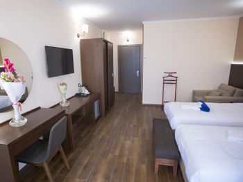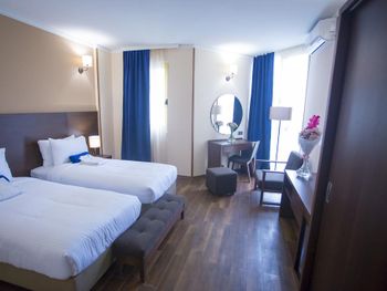 Пребыванием в отели остались довольны. Просторный номер и хороший небольшой балкон, на котором было приятно находиться. Отель учел пожелания по кроватям в номерах, нужны были 2 номера twin и 1 double, хотя изначально забронировано было по-другому, поскольку нужные варианты уже были недоступны.