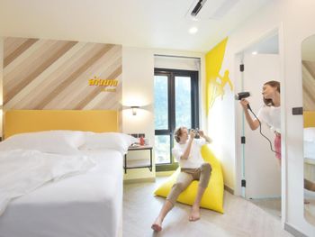 Хорошее местоположение,рядом кафешки,пляж от которого отходят лодки.Отель относительно новый,больше подходит для отдыха молодежи.Все для этого приспособлено,в номере много зарядных устройств.Есть отдельная комната с прачечной и гладилкой
