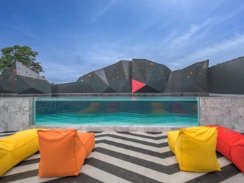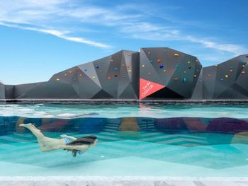 В бассейне нету зонтиков