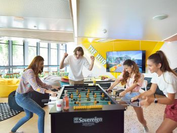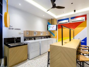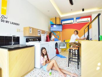 Хорошее местоположение,рядом кафешки,пляж от которого отходят лодки.Отель относительно новый,больше подходит для отдыха молодежи.Все для этого приспособлено,в номере много зарядных устройств.Есть отдельная комната с прачечной и гладилкой