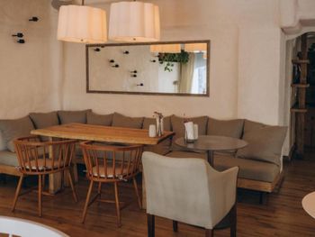 Отличный ресторан, только из-за ресторана бронировали этот отель!! Большой номер, видимо это были апартаменты, так как была кухня.