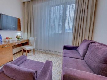 Отличное соотношение цена качество, хороший ресторан, отличное месторасположение . Персонал который оперативно решил все наши запросы. При бронировании букинг предложил улучшить категорию номера на полу люкс, по факту оказалось что данная категория номеров( полулюкс) с видом во двор. Сотрудники без проблем поменяли нам номер с хорошим видом