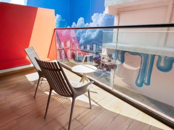 Очень, очень скрипучие двери балкона. Пожалуйста, сделайте с ними что-нибудь. Утро начинается с того, что ты слышишь, как в соседнем номере эти двери скрипят. Немного не продумано пространство ванной комнаты. Не хватает полочек поставить свои средства что в душевой, что у раковины. Безумно холодный пол, но есть тапочки