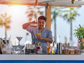 2) Бармен на баре у бассейна уронил пластиковый носик от бутылки в стакан с коктейлем, достал его руками без перчаток и продолжил приготовление до момента пока ему сделали замечание. - так же впервые увидел как бармен допивает жидкость из стаканов для приготовления коктейлей перед тем как помыть их.