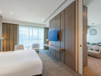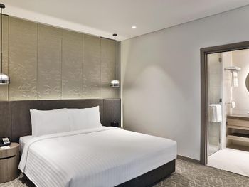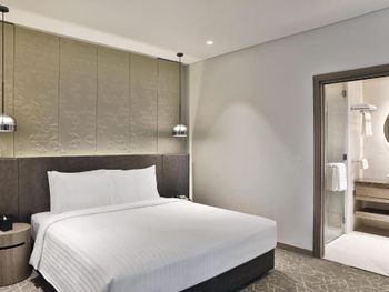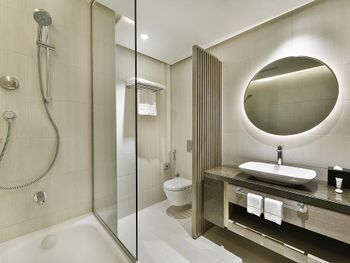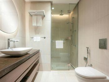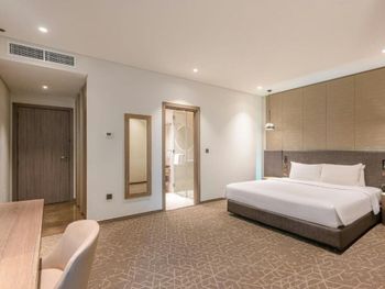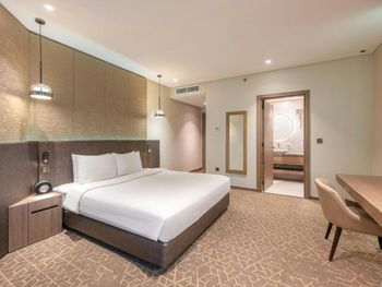 Отличный номер для стандарта,очень просторный.Видно что мебель относительно новая,стиль современный.Большой плазменный телевизор с интернетом,можно просматривать наши каналы и ютуб.Огромная мягкая кровать.Местоположение хорошее рядом ДубайМолл.