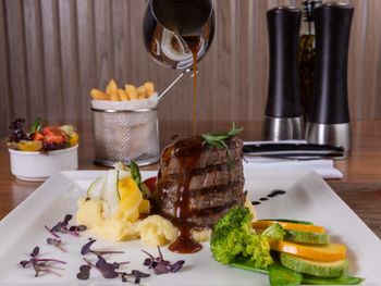 брали завтрак и ужин, завтрак без излишеств, но голодными не останетесь, ужин по меню - очень даже ничего, но мы ожидали лучшего.