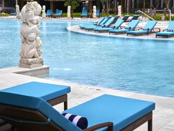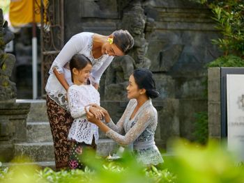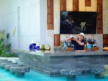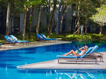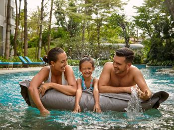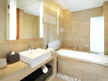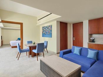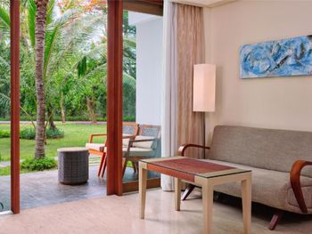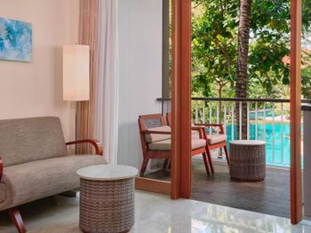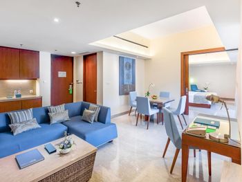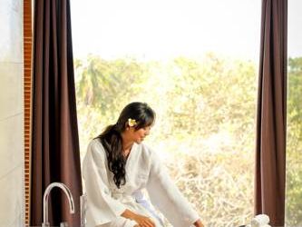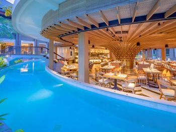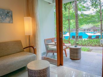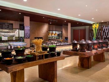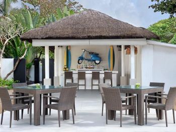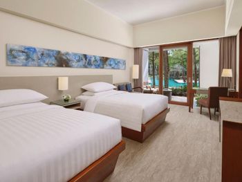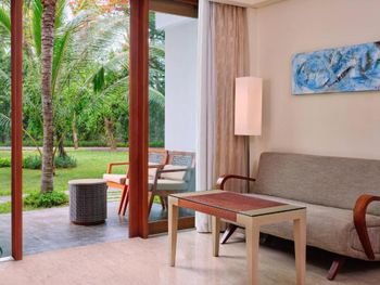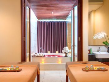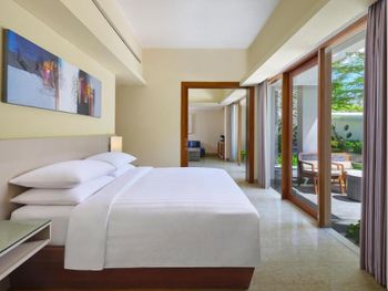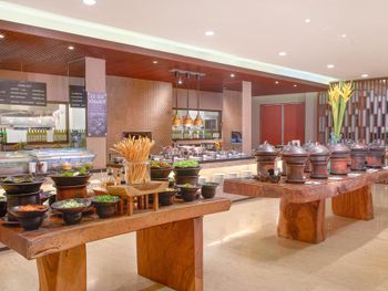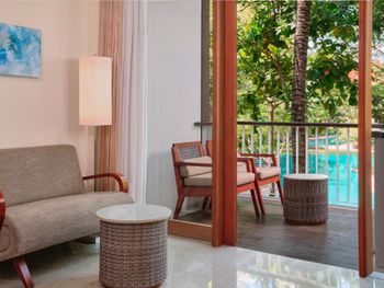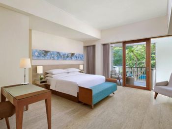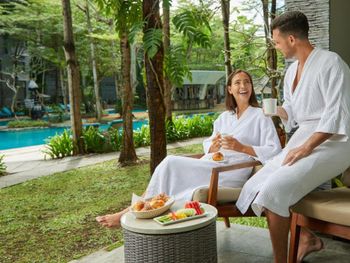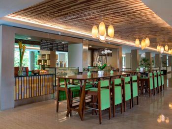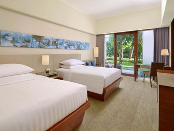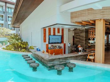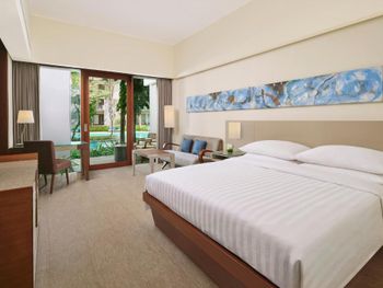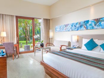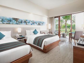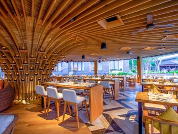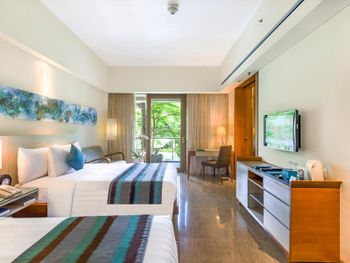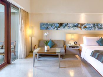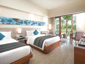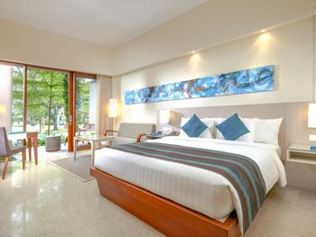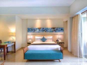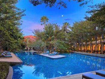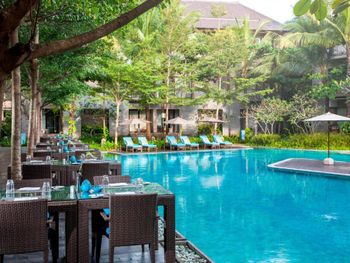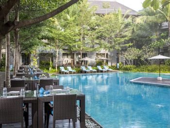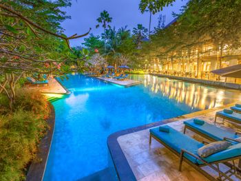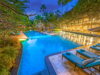 Устаревший Отель, заявлен, как 5 звёзд, но таковым уже не является. Очень маленькая собственная территория, ограниченная бассейном. Завтраки однообразные и, если утром идёт дождь, нужно быть готовым стоять полчаса в ожидании посадочных мест, так как места на улице не имеют крыши. В номере кондиционер направлен прямо на кровать, сильно дует. В нашем номер он ещё и был сломан, устанавливали на 21-22 градуса, он автоматически перепрыгивал на 16. Вызывали техника. Также была засорена раковина, вызывали техника, но проблему он не устранил. Плохо мыли туалет. Трансфер на океан раз в час, опоздали, будьте готовы или ждать час, или идти по жаре. При этом трансфер часто (особенно с пляжа) не идёт по расписанию. Также минивэн может быть заполнен, и вам просто не хватит места, будете ждать ещё час. Скудное меню в ресторане на ужин. Готовят неплохо, но очень зависит от повара в этот день. Для ужинов лучше пройтись в сторону Bali Collection (10 минут пешком по парку), там много ресторанов с хорошей едой. Кроме того, если хотите отдохнуть от детей, то вам точно не сюда. Очень много семей и заснёт маленькой территории, ощущение детского сада вокруг.