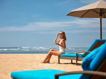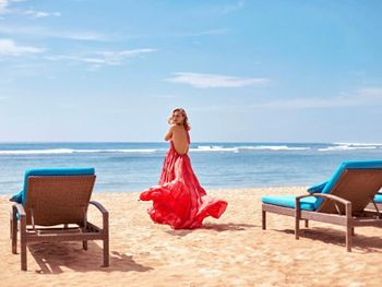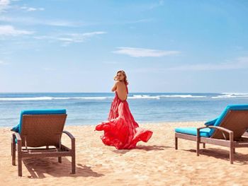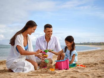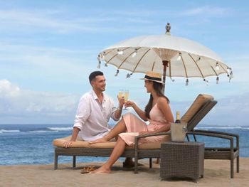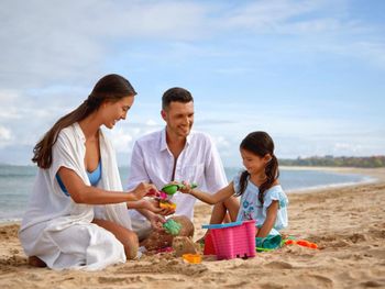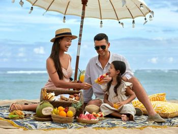 Отличный отель, трансфер на пляж, пляж с отливами, но для ребенка отлично и без волн. Персонал прекрасный, всегда готовы помочь. До Бали коллекшен 10 минут пешком. Нуса дуа очень спокойный район, чистый и красивый - гулять одно удовольствие. Завтраки хорошие, капучино на соевом делают :)