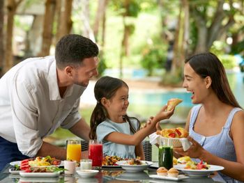Много фруктов на завтрак, но почему-то они их все не выкладывают. Приходится спрашивать и они достают манго где-то из под стола. Так и не поняли в чем суть.