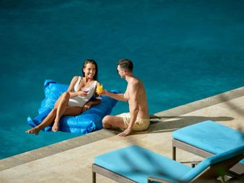 Если вы хотите моря, а не плавать в бассейне, это не сюда. Хоть и на пляже у отеля оборудована своя зона с удобными лежаками, но ездить туда на трансфере или ходить пешком - штука в любом случае утомительная. Да и расположение на пляже не самое удачное, заход в воду неприятный - мелкий, с камнями и кораллами. Самый лучший заход в воду у отеля Ayodya.